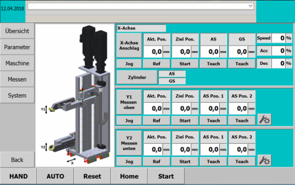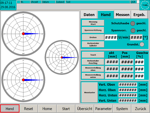 Bedienoberfläche für die Steuerung einer Wucht- und Messanlage für Felgen