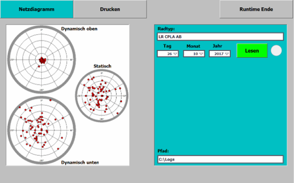 Spinnennetzauswertung von Wuchtergebnissen einer vollautomatischen Felgen Wuchtmaschine
