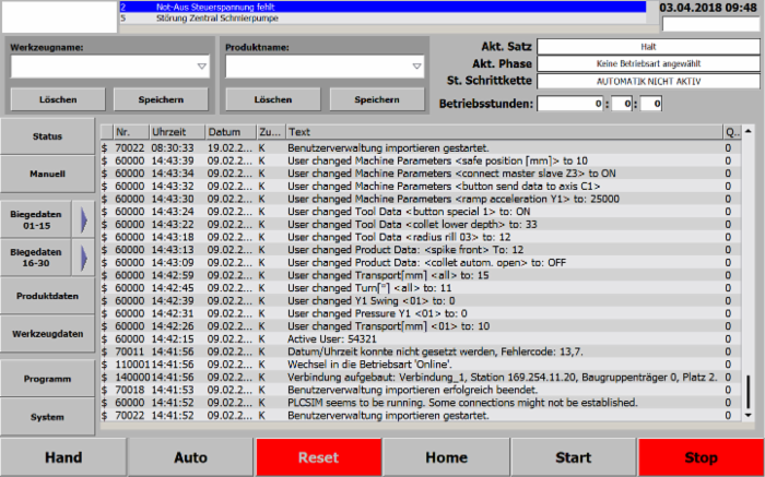 Logsystem zur Nachverfolgung von Parameter Änderungen durch Benutzer