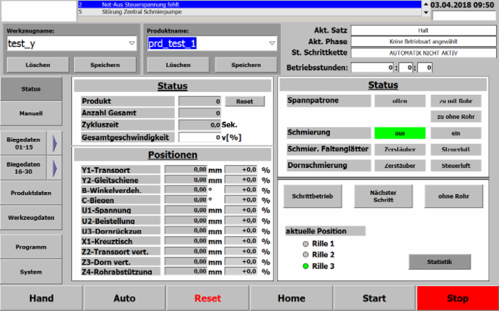 Bedienoberfläche für die Steuerung einer Rohrbiegemaschine